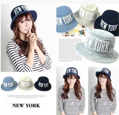 Nón bucket jeans Hàn Quốc NEW YORK xanh lợt 017